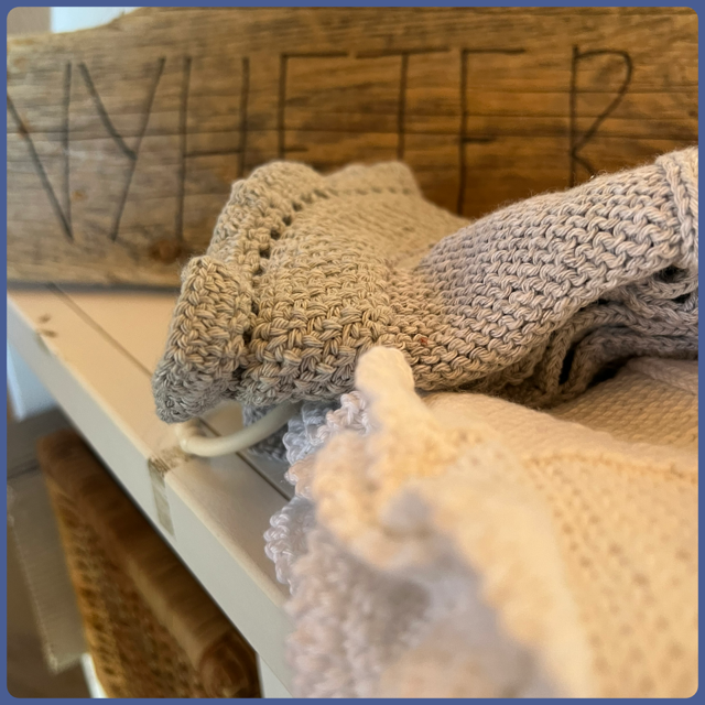 Handgjord filt med bitring, 100 % bomull och barnvänlig bitring. Finns en vit med liten kart runtom och en i två olika grå toner med en bredare kant runtom . Egen design av båda.